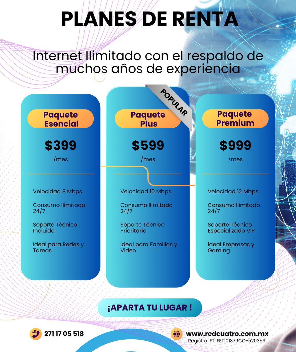 ¡No pagas ni un peso hasta que estés navegando al 100%!" En RED 4 vamos, instalamos y probamos tu conexión. Si te gusta el servicio, aprovechas la promoción de activación. ¡Trato de palabra!